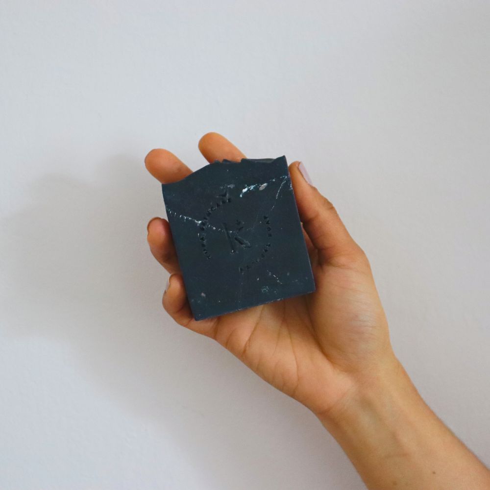 Přírodní mýdlo vyrobené s aktivním uhlím k detoxikaci pokožky, odstranění chemického nánosu a hloubkovému čištění problematické pleti, zejména mastné pleti, pleti náchylné k akné a skvrnám.